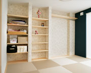 明るく機能的な着付け室です。大きな引き違いの窓から沢山の光が入ってきます。